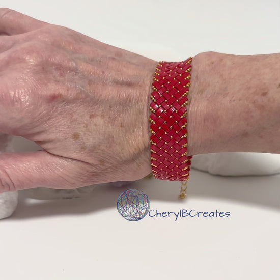 High-quality glass Tila beads, woven in a herringbone pattern, available in a wide variety of color combinations. This jewelry feels silky smooth on your skin.