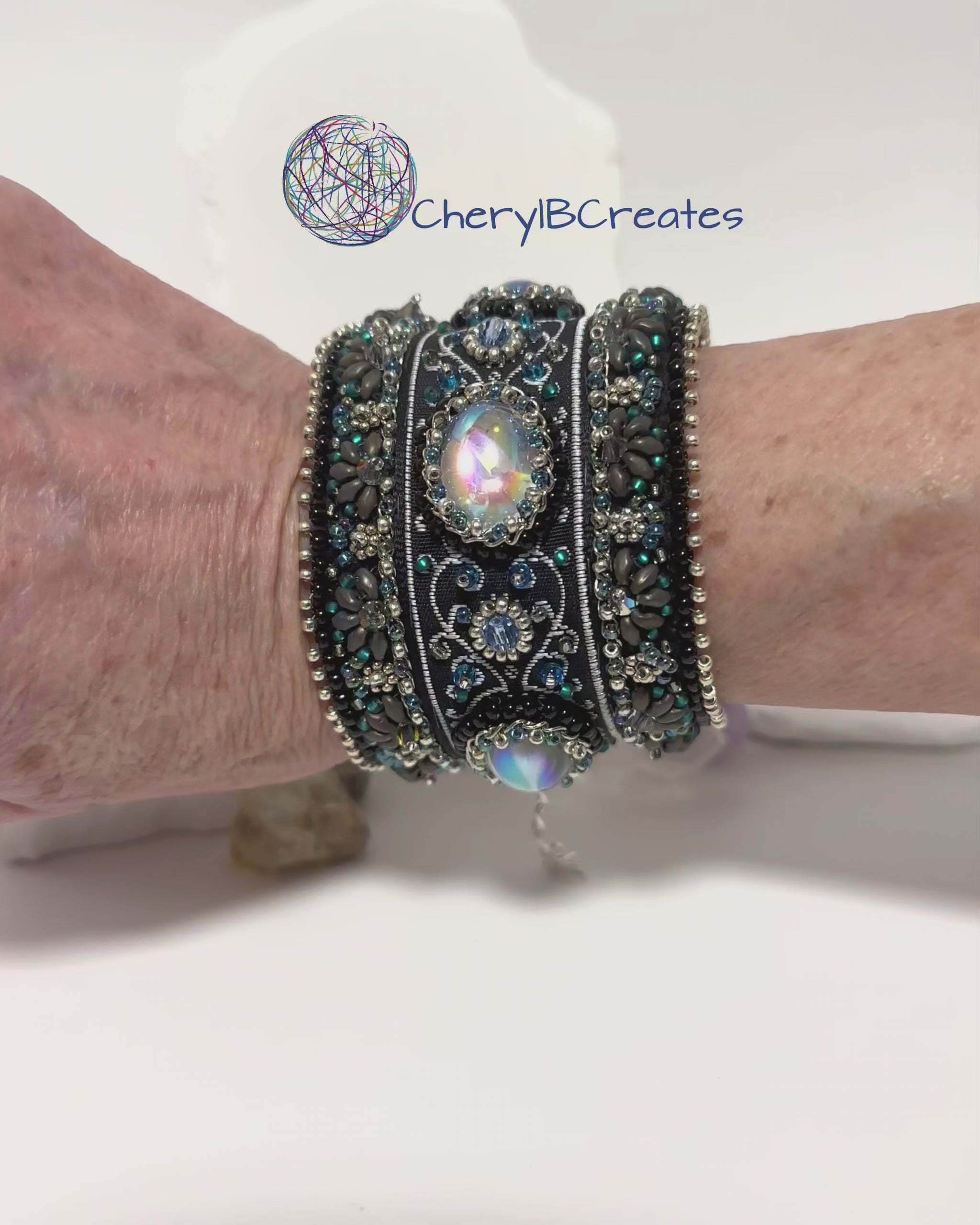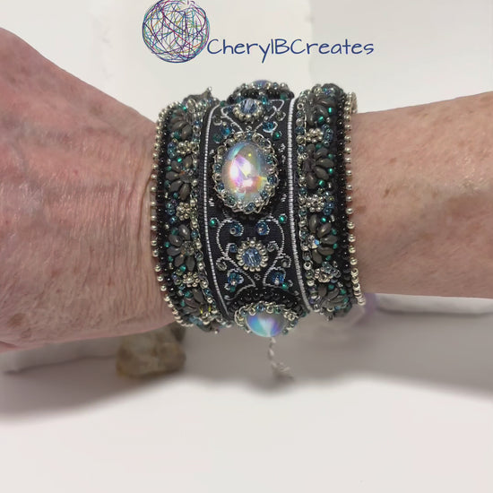 Made from a kit and design by Betty Stephan, it's interplay of matte, reflective, and dimensional elements creates visual drama for your wrist.